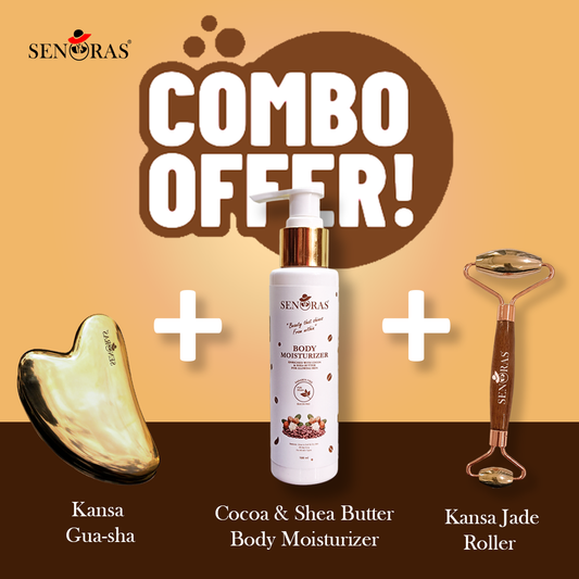 🌟 Senoras Ayurvedic Glow Combo | Kansa Roller + Bronze Gua Sha + Cocoa Shea Moisturizer | 3-in-1 Skincare Ritual for Radiant & Nourished Skin